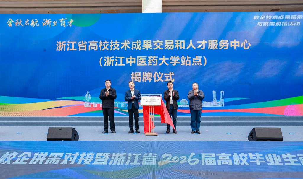 会上,浙江农林大学、浙江师范大学与海康威视集团作交流发言,杭州高新区(滨江)人社局、宁波市鄞州区人社局现场进行就业推介。会议启动了“百校对百县”校地技术成果与人才供需合作行动,现场举办了高校技术成果展示交易活动(中医中药专场),邀请省内高校百余项高转化价值的中医中药科技项目参展。活动揭牌设立了浙江省高校技术成果交易和人才服务中心(浙江中医药大学站点)。