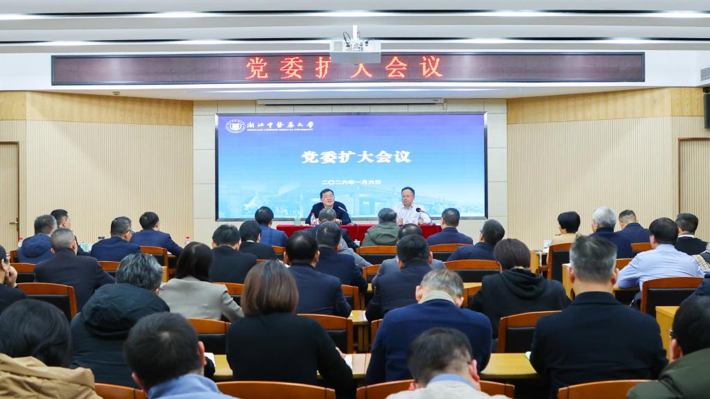 会议强调,要对标对表,狠抓落实,加快建设一流中医药大学的步伐。聚焦核心竞争力提升,集中力量做强中医学登峰学科,开展有组织的科研,持续在大平台、大成果、大人才上发力,全力冲刺“双一流”建设目标。发挥特色优势,主动对接健康中国战略和老龄化社会需求,深化中医药在预防、治疗、康复、养老全链条的作用,加强药食同源的基础研究与产品研发,促进“中医药+”新型消费,助力共同富裕和中医药产业高质量发展。围绕建设创新浙江,深入推进教育科技人才一体改革发展,深化科技创新与产业创新深度融合,促进人工智能赋能中医药发展,加快推进中医药现代化。推进基础设施提质工程,加快推进新校区建设,实现资源集约高效利用,统筹考虑教学科研衔接、师生工作生活保障、校园文化传承等因素,优化提升办学条件环境。统筹发展与安全,压紧压实意识形态工作责任,巩固深化平安校园建设成果,严格落实全面从严治党规定要求,常态化推进清廉学校、清廉医院、清廉单元建设,切实维护校园安全稳定。
