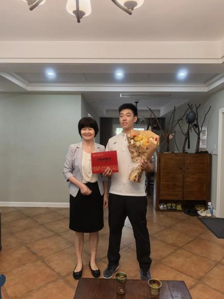 学院党委书记马慧娟代表学院送上了鲜花,并勉励林子骅同学希望他在大学期间不断充实自己,既要夯实理论功底,也要注重临床实践,在传承中创新、在沉潜中突破,为中医药事业注入青春动能。