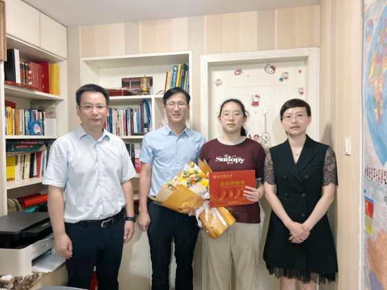 7月28日,我校副校长黄建波,公共卫生学院党委书记王斌艳、学工办主任方静等一行,专程前往2025级预防医学专业新生潘虹宇家中送上录取通知书。