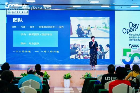 7月10日,杭州国际传播中心(Hangzhoufeel)举办了以“Z世代赋能 国际范表达”为主题的开放日活动。杭州市委宣传部相关负责人、11所在杭高校国际教育学院的教师代表及国际学生代表等百余人齐聚一堂。活动在杭州国际传播中心举行,涵盖海外传播主题分享、高校国际传播主题分享、国际青年闪电分享等多个精彩环节。我院副院长万朵与国际学生代表——坦桑尼亚籍硕士生张敏(NZELLA RHODA JOHN)受邀出席,并进行了主题分享。
