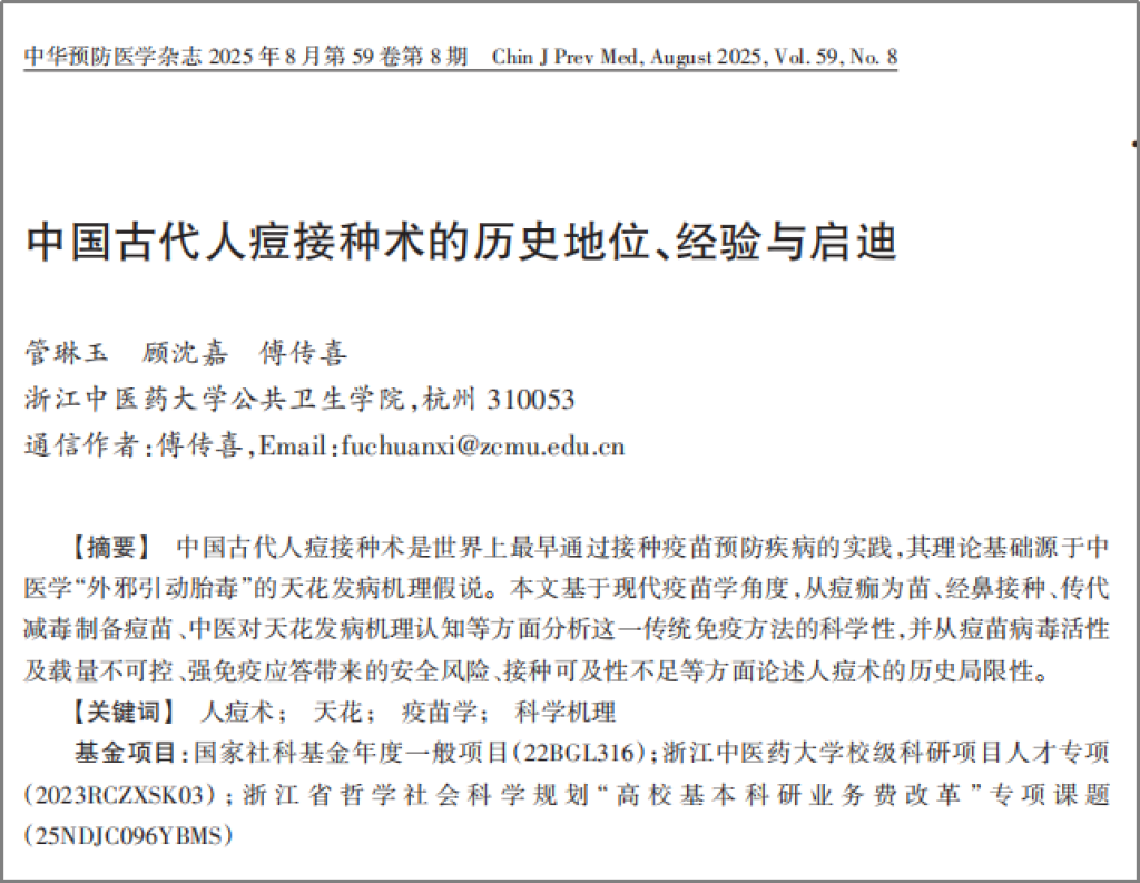 我国古代人痘术的科学内涵与当代价值研究发表