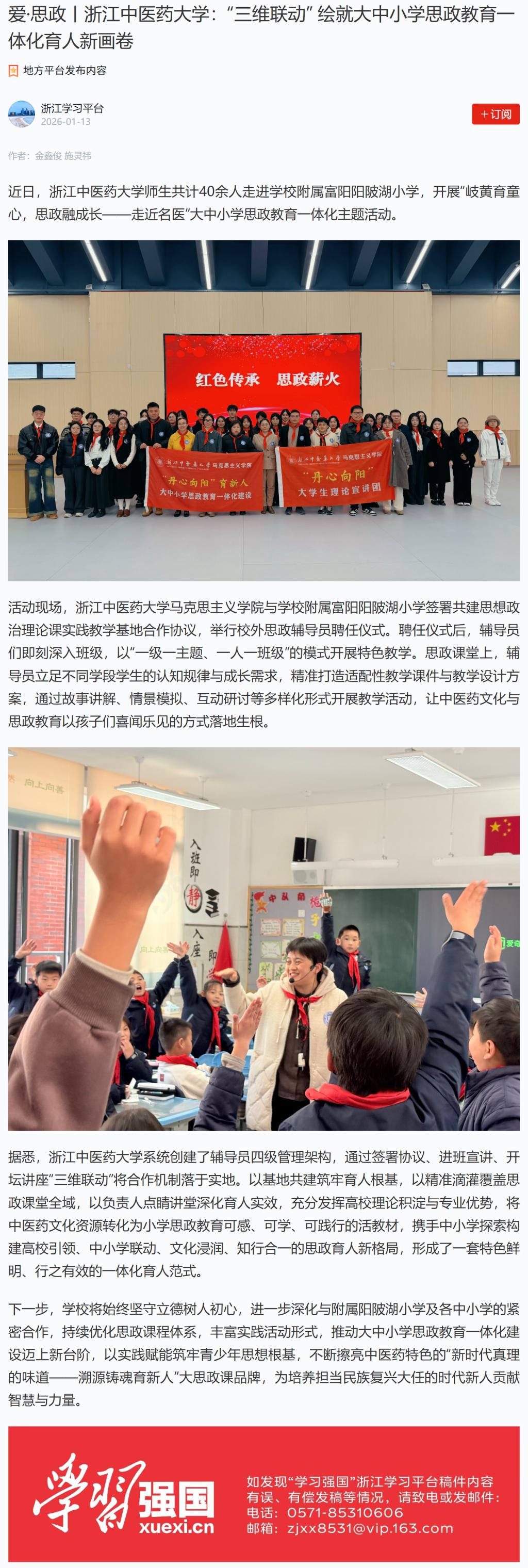 浙江中医药大学:“三维联动” 绘就大中小学思政教育一体化育人新画卷