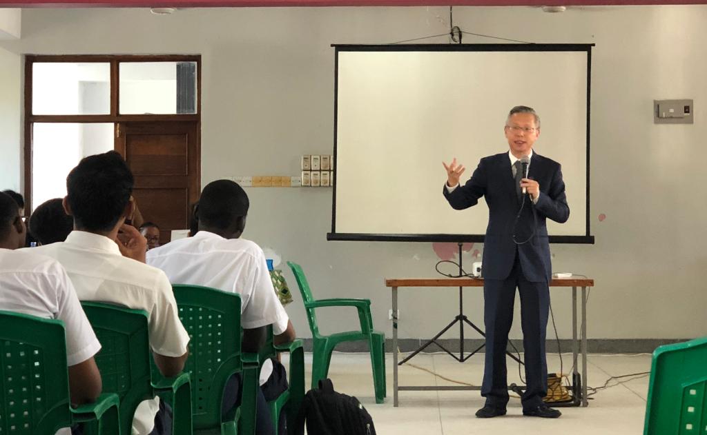 在坦桑尼亚期间,代表团访问了达累斯萨拉姆大学,与该校副校长B.Rutinwa教授等进行会谈,双方就医学教育领域的师生交流、人才培养等达成了共识。代表团一行还实地考察了达累斯萨拉姆大学孔子学院和中国文化研究中心,王颖为也该校孔子学院师生作了中医文化讲座。代表团一行还专程前往Loyola High School、Al Muntazir Islamic Seminary、Barbro Johnason Secondary School等3所优质高级中学举行了我校国际教育推介会,为累计500余名学生进行了宣讲。