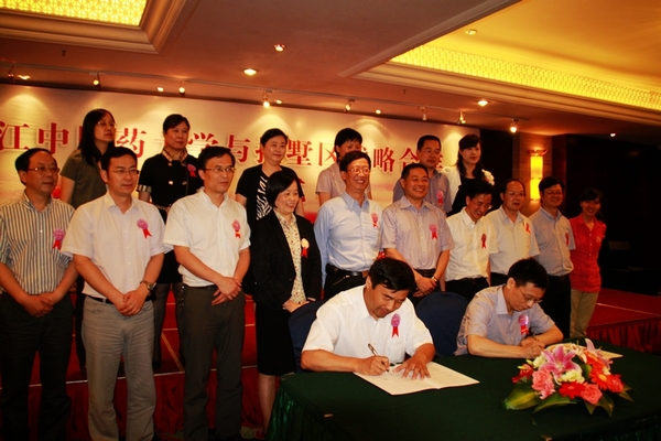 校党委书记孙秋华在签约仪式上讲话。在简单介绍我校的基本情况后,她指出,服务地方经济发展是高校的重要职责之一,高校与区域经济的互动发展已成为高等教育发展的一个重要趋势。她表示,学校将坚持“以服务求支持,以贡献促发展”的理念,积极发挥学科和人才优势,大力推进与研究机构、政府和企业的合作,促进产学研结合,不断提高对区域经济社会发展的贡献度,为我省中医药事业科学发展作出新的努力。