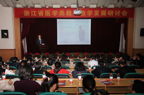 为贯彻落实《教育部关于全面提高高等教育质量的若干意见》,推动课堂教学改革和教学经验交流,帮助医学类专业教师更新教学理念、提升教学水平,10月28日至29日,由浙江省高教学会教学管理专业委员会主办、我校教师教学发展中心承办的全省医学类专业教师教学发展研讨会在我校图书馆报告厅举行。来自浙江大学、宁波大学、杭州师范大学、绍兴文理学院、浙江海洋学院、台州学院、湖州师范学院、嘉兴学院、丽水学院、浙江医学高等专科学校、宁波卫生职业技术学院等10余所兄弟院校及我校的140余位医学类专业教师参加了此次研讨会。我校副校长李俊伟致欢迎词。