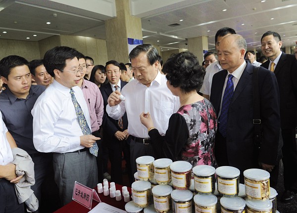 会前,夏省长在参观高校科研成果展时,对我校参展的新药“派能达胶囊”、流动性饮片等科技成果表示了浓厚兴趣。在听取了范永升校长等对学校的有关情况和最新科技产品介绍后,夏省长指出要加快推进中医药产品的研发,尤其是一些科技含量高、治疗效果好的产品,要争取早日生产并投放市场,治愈更多病人。