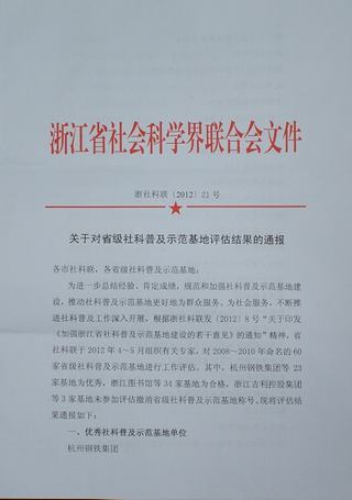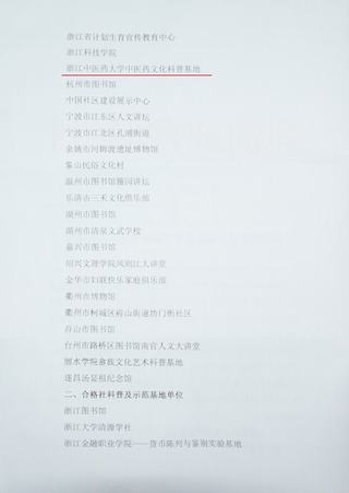 根据浙江省社科联《关于对省社科普及示范基地评估结果的通报》(浙社科联[2012]21号),我校图书馆“浙江中医药大学中医药文化社科普及示范基地”获评优秀社科普及示范基地。