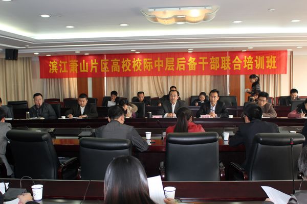 11月14日,滨江、萧山片区高校校际中层后备干部联合培训班开班典礼在我校行政楼第六会议室举行。