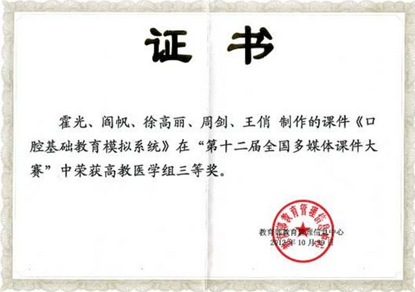 日前,第十二届全国多媒体课件大赛在中央财经大学举办。我校管理学院王悦老师和口腔医学院霍光老师两支团队入围决赛并赴京参加答辩。经过激烈角逐,王悦团队作品《中医经方纵横》荣获高教医学组二等奖,霍光团队作品《口腔基础教育模拟系统》荣获高教医学组三等奖。