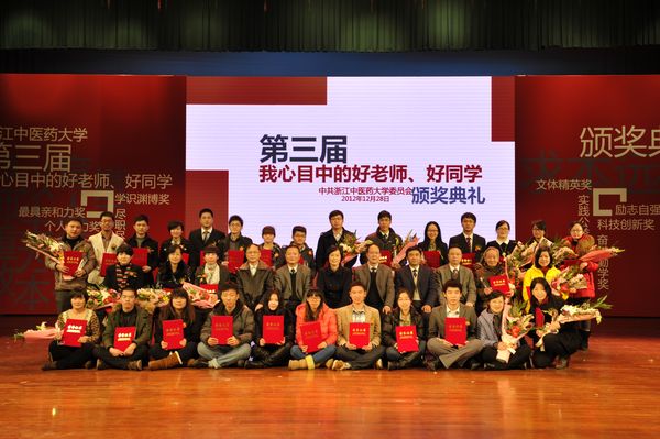 12月28日下午,第三届“我心目中的好老师、好同学”颁奖典礼在行政楼报告厅隆重举行。校党政领导孙秋华、黄文秀、熊耀康、李俊伟、茹惠祥、张光霁,各职能部门负责人、学院师生代表600余人参加颁奖典礼。