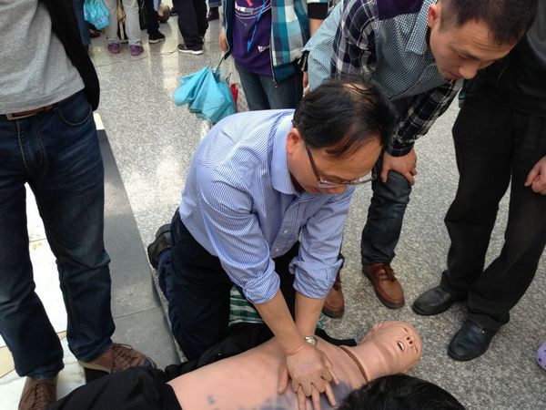 “喂,喂,你怎么了?没有意识,没有呼吸,也没有脉搏了!1001、1002、1003、1004、1005……”“对,完成评估确认后,检查、清理口腔,马上连续做心脏按压30下,控制按压的力度,对,对,然后吹气2次……” 这是5月8日学校“至善”教职工文化沙龙之“关爱生命、传递大爱”专题活动之二——心肺复苏的操作技能和运用训练现场。此次活动由校工会、医管处联合主办,第二临床医学院承办,满心、黄续两位老师担任主讲嘉宾。学校纪委书记茹惠祥出席活动。活动分成操作知识讲解、操作示范、操作演练等三个环节。