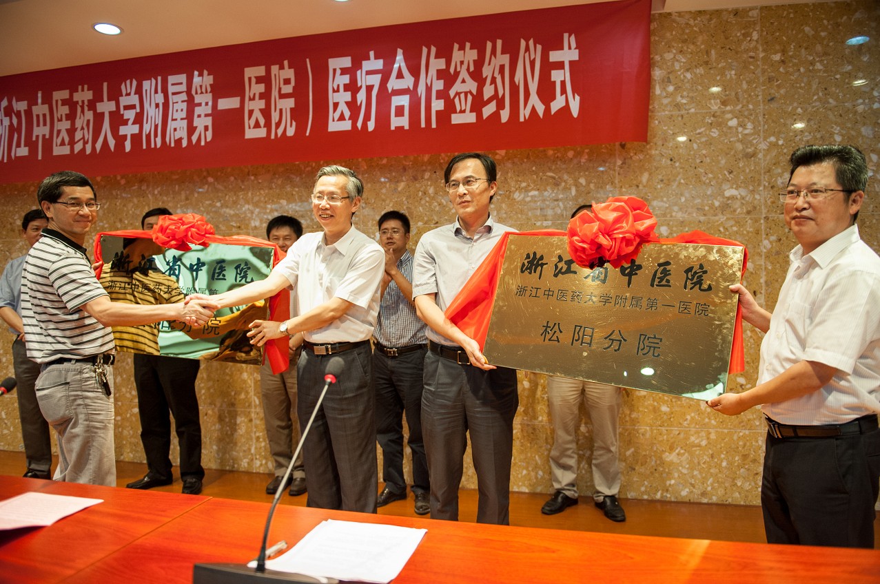 7月18日,学校附属第一医院与松阳县人民政府举行合作医疗签约仪式。浙江省卫生厅副厅长张平,省中医药管理局局长徐伟伟,学校副校长方剑乔,丽水市副市长戚永远,丽水市卫生局局长邱务土,松阳县党委书记钟昌明,附属一院负责人等出席了仪式。
