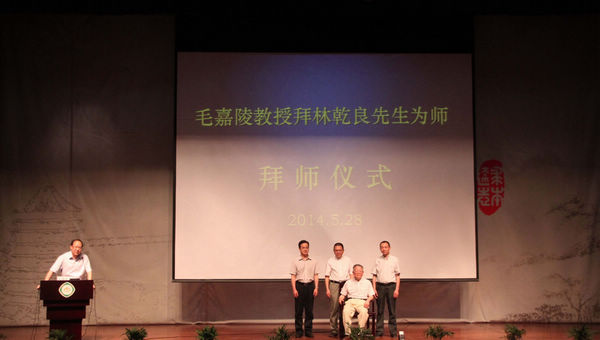 据悉,毛嘉陵教授在讲座结束后恭拜我校已离休中医教师、西泠五老之一的林乾良教授为师。