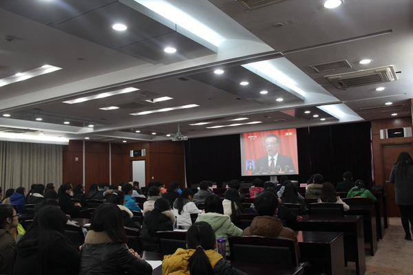 5日上午9时,十二届全国人大三次会议开幕会在人民大会堂召开,我校师生通过网络直播、集中收看转播等方式,认真观看了李克强总理所作的《政府工作报告》。在认真观看了直播后,蔡松同学对报告中的医改表述比较关注,“鼓励医生到基层多点执业,发展社会办医。开展省级深化医改综合试点。加快建立医疗纠纷预防调解机制。这些举措对解决就医难、缓解医患关系紧张等都具有重要意义。”大四学生杨月燕表示,“关注国家大事,了解时事政策,是我们当代青年应有的担当。作为今年要毕业的学生,我非常关注今年我国经济形势发展,经济形势直接影响大学生就业。今年国家提出7%的增速,让我悬着的心放松了。”王建钟老师认为,总理的报告文风朴实,贴近实际,关注民生,对报告中提到的“有权不可任性”、“互联网+”、“创客”、“大众创业、万众创新”等印象深刻。沈备娟老师表示,李克强总理在报告中指出,要“积极发展中医药和民族医药事业”,这让我们很振奋!中医药是我国的瑰宝,对老百姓身体健康非常重要。总理从政府报告中提出这点,让我们对中医药的未来发展信心更强了。