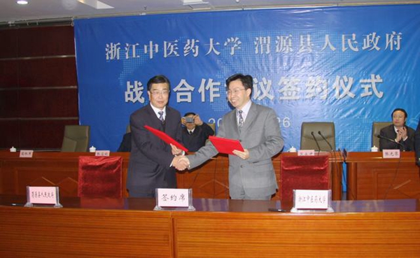 12月26日,我校与甘肃省渭源县人民政府战略合作签约仪式在渭源举行。校长范永升、副校长张光霁,党校办、社会合作处、药学院、中药饮片有限公司有关负责人,甘肃省定西市市长唐晓明、甘肃省卫生与计划生育委员会主任刘维忠、渭源县委书记吉秀、县长蔺红军及相关部门负责人出席签约仪式。范永升校长与蔺红军代表校县双方签约。