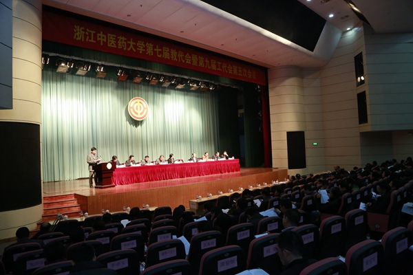 2014年12月24日下午,学校在行政楼报告厅召开第七届教代会暨第九届工代会第五次会议,对《浙江中医药大学章程(草案)》、富春校区运行管理方案、中药饮片有限公司改制方案等三个事关学校长远发展的重大事项进行讨论和审议。党政领导孙秋华、范永升、熊耀康、陈刚、李俊伟、茹惠祥、张光霁、方剑乔,237名正式代表、特邀代表、列席代表出席大会。会议由工会主席主持,校党委副书记熊耀康作会议筹备说明。