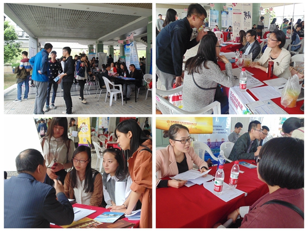 4月15日,我校就业指导中心在18号楼一楼大厅举行了2015届毕业生春季招聘会。金华市中医院、迪安诊断、扬子江药业、肯德基等80多家知名企事业单位走进我校,为我校毕业生带来了2300多个就业岗位。1400多名应届毕业生参加了此次招聘会,约300人与用人单位达成了初步就业意向。招聘会还吸引了不少低年级的同学到场观摩学习,感知就业。