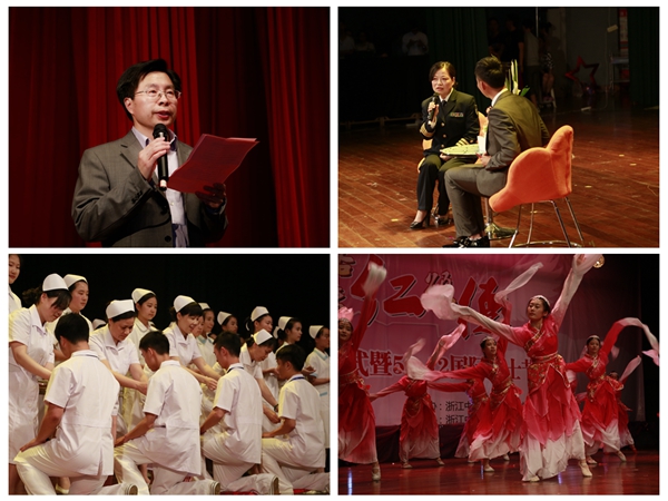 5月6号晚,在第103个国际护士节到来之际,护理学院在行政楼报告厅举行了“提灯循路 传仁颂德”2013级护生加冕仪式暨5·12国际护士节晚会。校党委书记孙秋华、校长范永升、党委副书记陈刚、副校长张光霁应邀出席了晚会。晚会邀请了第44届南丁格尔奖获得者王海文、杭城各大医院护理部主任以及护理学院2位退休教师给护生们授帽。