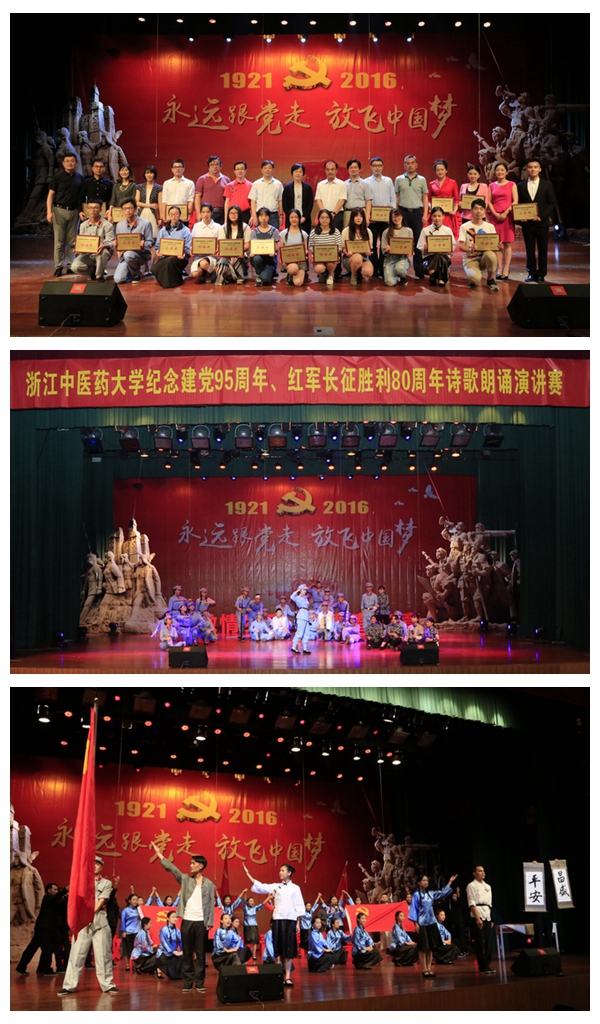 6月7日晚18:00,庆祝建党95周年、红军长征胜利80周年诗歌朗诵演讲赛在滨文校区行政楼报告厅隆重举行。学校领导孙秋华、方剑乔、陈刚、郭清、李俊伟、章建生以及各学院(医院)院长,各党总支(党委)书记、副书记,机关部门、直属单位负责人,师生代表,演职人员近千人参加了活动。