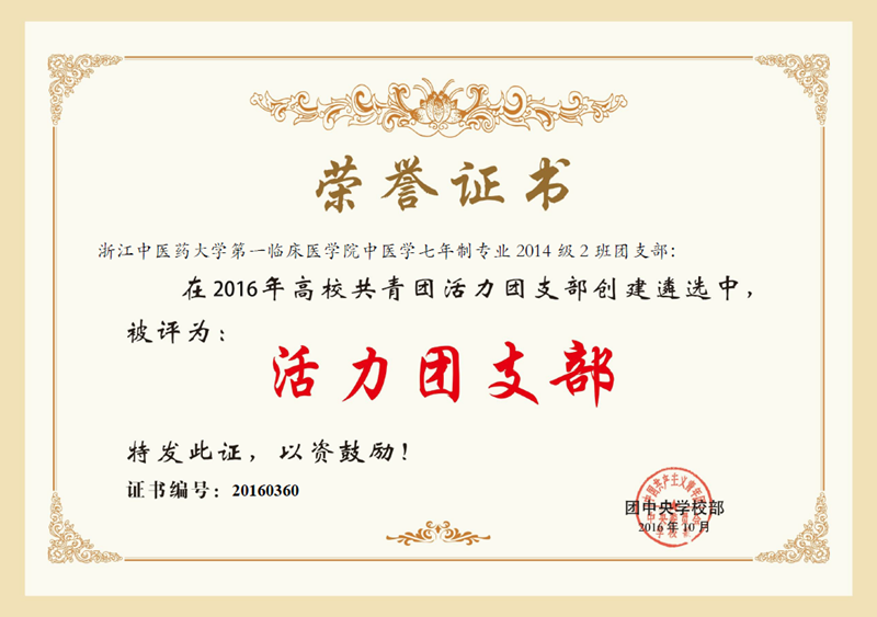 近日,从团省委传来消息,我校中医学七年制专业2014级2班团支部在2016年高校“活力团支部”创建遴选活动中被评为“活力团支部”。此外,该团支部与护理学专业2014级4班团支部还被评为浙江省高校共青团百强“活力团支部”。