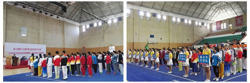 5月11日至12日,浙江省第十三届中学生运动会武术比赛在我校举行。来自省内各地市武术代表队齐聚我校,角逐了初中组、高中组各23项比赛项目。我校副校长、本次赛会组委会名誉主任李俊伟教授出席开幕式并致辞。