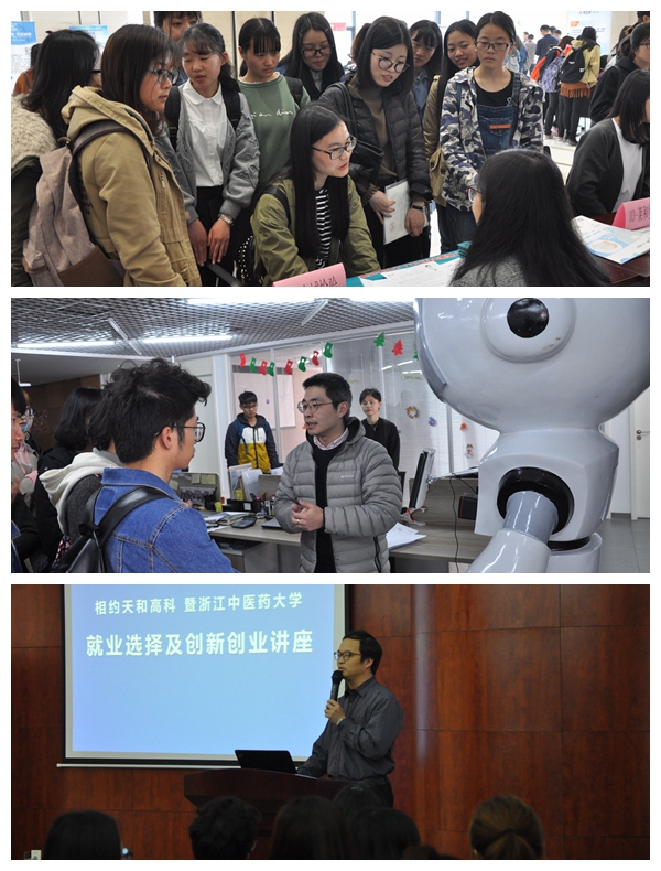 本次招聘会除了现场招聘面试外,还增设了就业专题辅导、优秀企业参观两个板块,为毕业生明确求职方向、全方位了解用人单位提供帮助。杭州天和高科技产业园副总裁、杭州资深大学生就业创业专家团导师朱冬生为我校毕业生作了求职经验分享。杭州百世伽信息科技有限公司负责人王鑫向同学们介绍了人工智能与生物医药向结合的行业背景,并带领大家参观了最新的科技产品——智能导诊机器人。杭州金域医学检验所有限公司工作人员带领毕业生们参观了公司厂房及检验实验室。