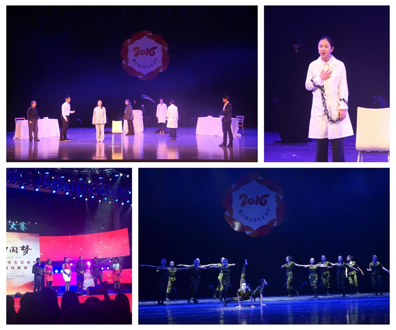 10月30日至11月4日,2016年浙江省大学生艺术节在杭州举行。我校参赛作品《灵魂庭审》、《人民前线》和《Price tag》分别晋级戏剧类、舞蹈类和校园十佳歌手决赛,并获得戏剧类一等奖、舞蹈类二等奖和十佳歌手“优秀歌手”称号。学校还获得“组织工作奖”。