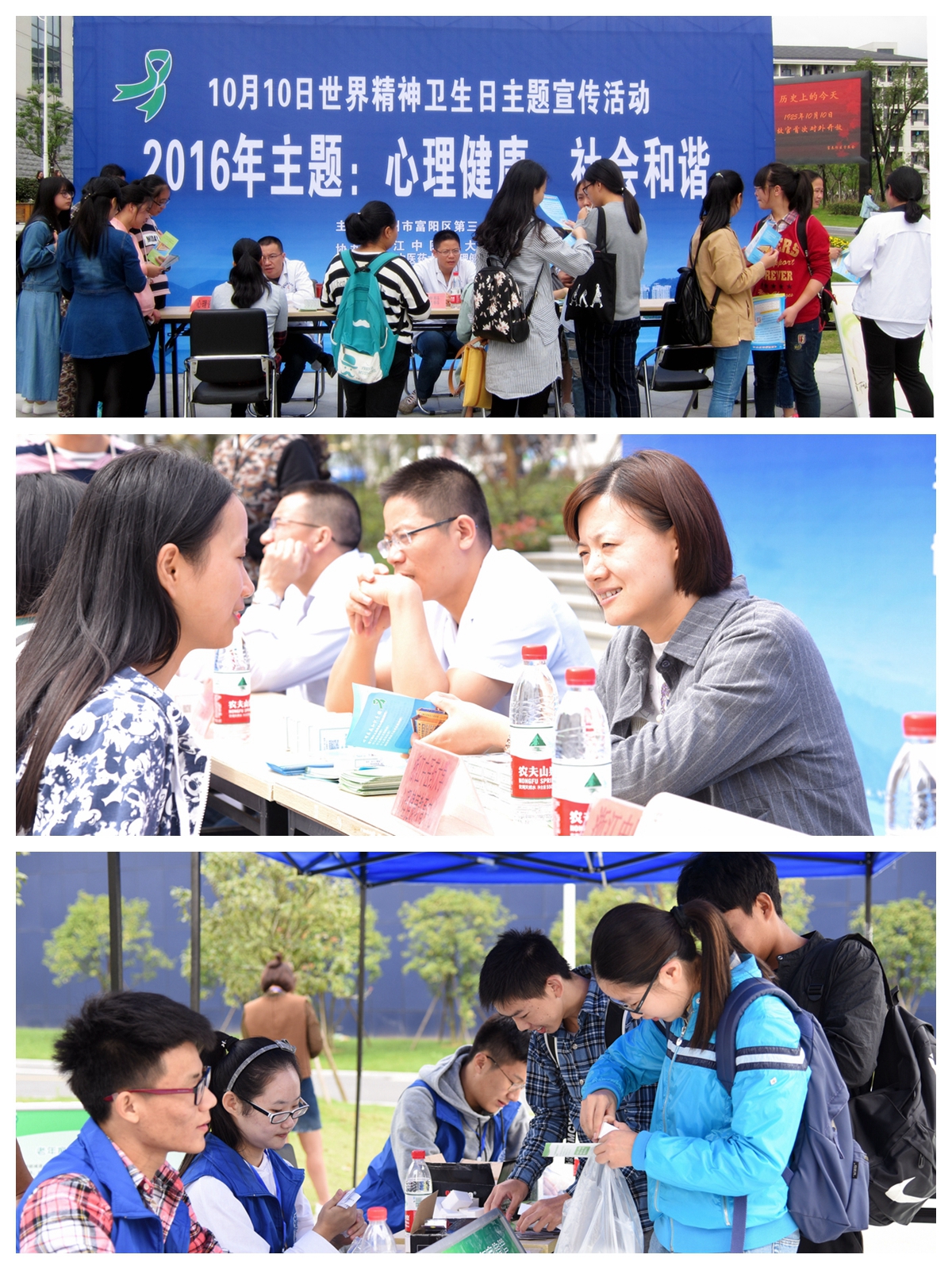 10月10日是第25个“世界精神卫生日”,今年的主题为“心理健康,社会和谐”。我校心理健康中心、校团委联合富阳区第三人民医院在富春校区开展了2016年世界精神卫生日主题宣传活动。