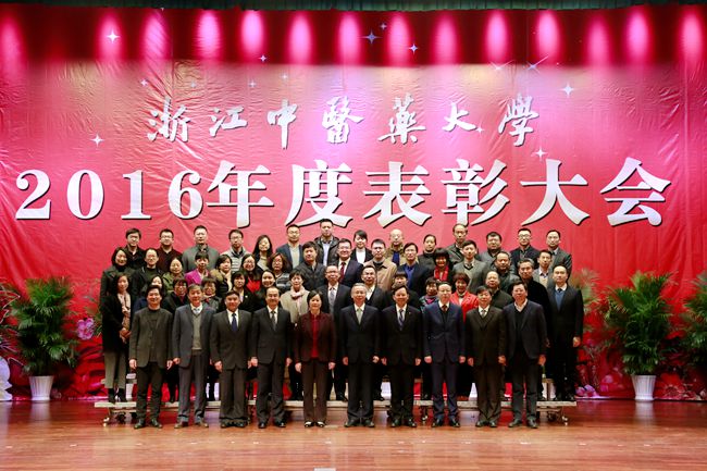 大会对2016年度校内外各类先进集体和先进个人进行了表彰,并号召全校教职工以受表彰的单位和个人为榜样,撸起袖子加油干,瞄准一流标杆、推进内涵建设、强化特色发展、深化改革、精准施策,全力推动学校在新的起点上实现追赶跨越,奋力谱写浙江中医药大学美好新篇章!