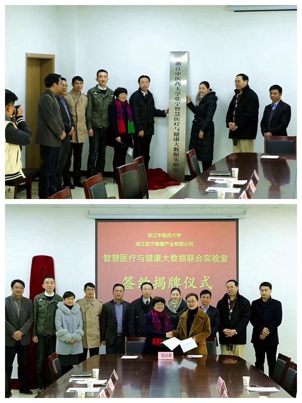 12月16日,由我校和乾宁健康有限公司共同建设的“浙江中医药大学智慧医疗与健康大数据联合实验室”签约、揭牌仪式在富春校区举行。副校长张光霁,社会合作处、人文社科学院以及乾宁健康管理有限公司相关负责人出席签约挂牌仪式。