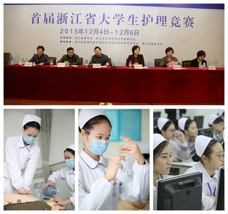 2015年12月4日-6日,由浙江省教育厅、浙江省大学生科技竞赛委员会主办,浙江省高等学校护理学专业本科教学指导委员会、浙江中医药大学承办的首届浙江省大学生护理竞赛在我校举行。浙江省教育厅高教处和浙江省护理学会有关领导,浙江省护理学教指委专家,各高校领队、指导老师及参赛队员近150人参加了开幕式。