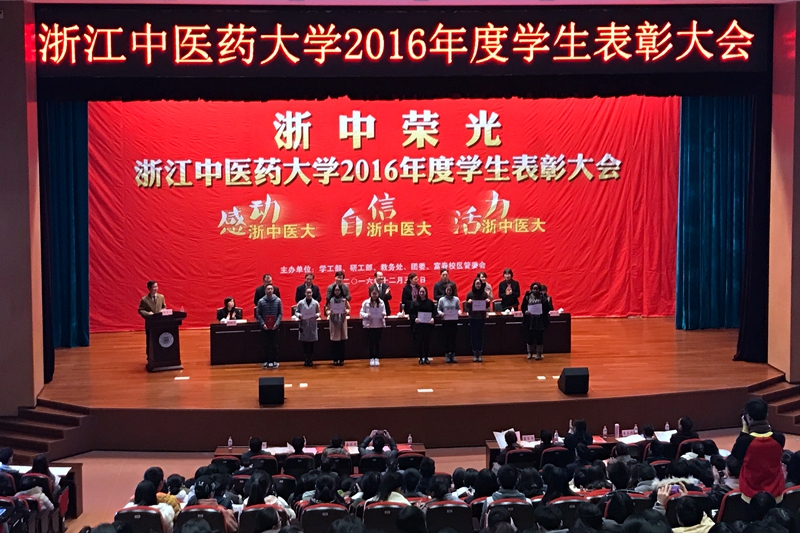 12月30日下午,我校在富春学生活动中心剧场隆重召开“浙中荣光”浙江中医药大学2016年度学生表彰大会,对2016年度各级各类获奖学生进行表彰。各学院分管学生工作负责人、学生工作办公室负责人、获奖学生代表及2016级新生代表近700人参加表彰大会。