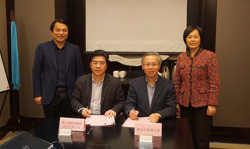 3月21日,学校与康恩贝制药股份有限公司校企合作签约仪式在杭州康恩贝健康之家举行。校党委书记孙秋华、校长方剑乔,浙江康恩贝制药股份有限公司董事长胡季强、总裁王如伟等领导出席签约仪式。党校办、社会合作处负责人,康恩贝制药股份有限公司相关领导一同参加。
