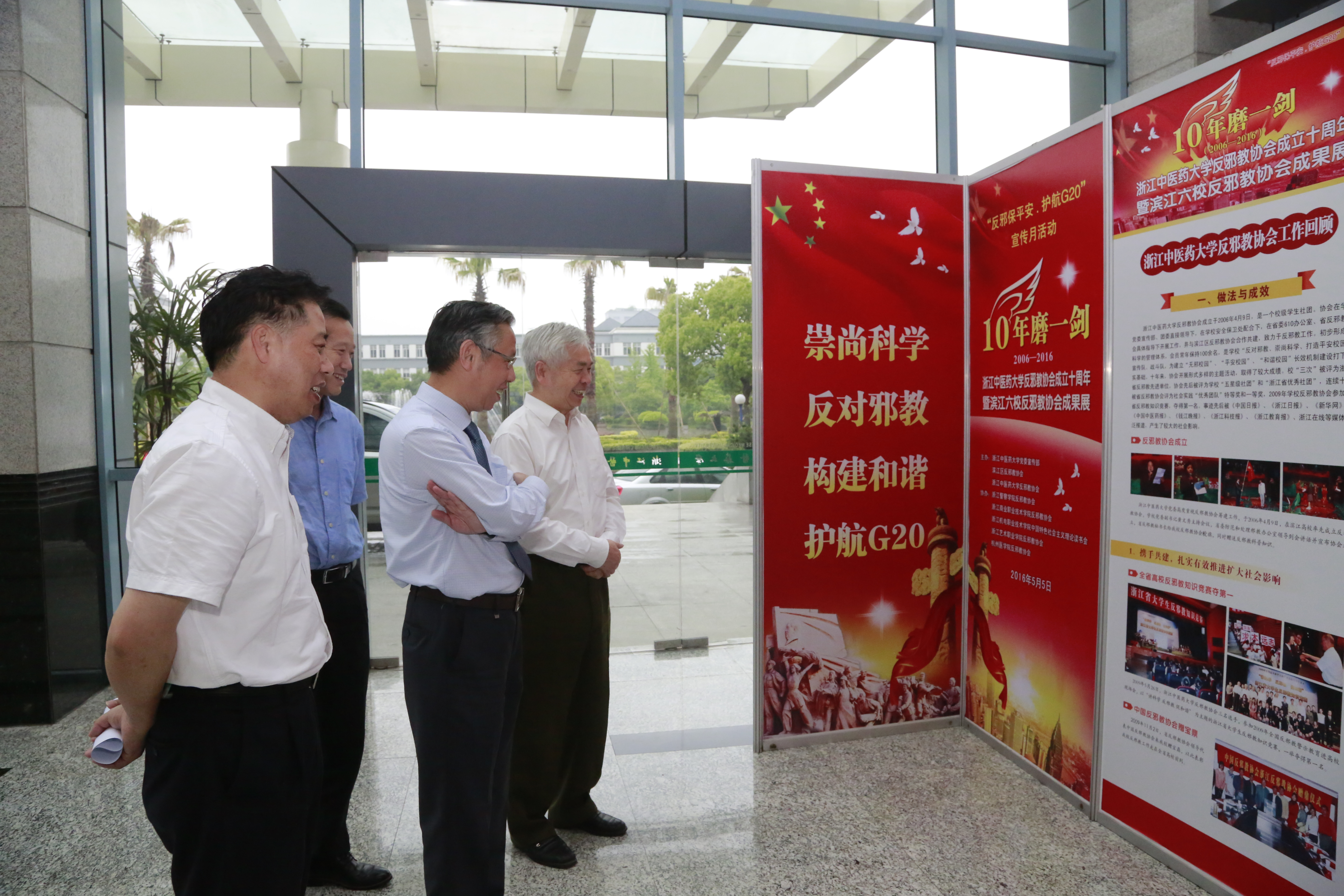 日前,杭州市“反邪保平安·护航G20”宣传活动启动仪式暨反邪教警示教育阵(基)地群建设成果展在我校举行,市委副书记,省、市防范办、市反邪教协会负责人、我校方剑乔校长、滨江区6所高校相关负责人以及师生代表600余人参加了活动。