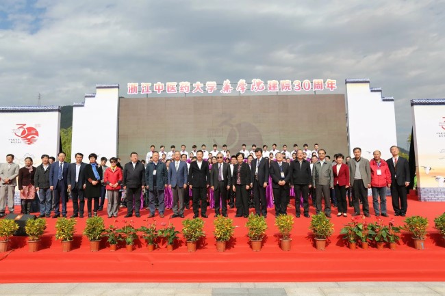 11月12日,药学院建院三十周年纪念活动在富春校区时珍广场举行。学校党政领导孙秋华、方剑乔、陈刚、张光霁、赵峰、章建生,中国工程院院士李大鹏,省中医药管理局局长徐伟伟出席;兄弟院校嘉宾,学校机关职能部门、各学院负责人,药学院离退休教师、校友代表和在校师生1300余人参加。