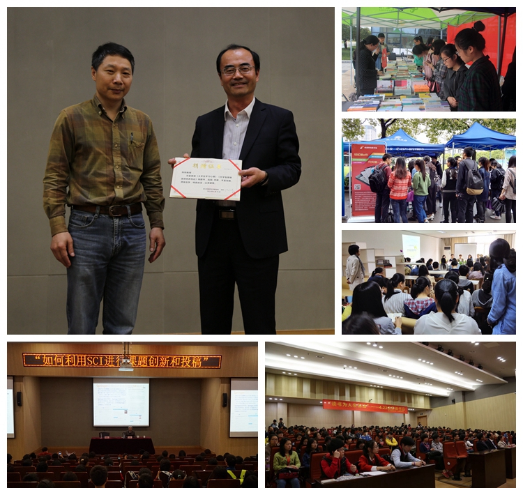 本次读书节以“营造书香校园 共建精神家园”为主题。活动期间举办了“中医古籍学术传承”、“利用SCI进行课题创新和投稿”、“数据库平台使用推广”等5场专题讲座和大学生必读书目征集、“黄宾虹书画作品展”、“我眼中的图书馆”摄影大赛、“最牛读者”评选等10余场活动。活动内容丰富,形式多样,精彩纷呈,吸引了千余名师生参加。