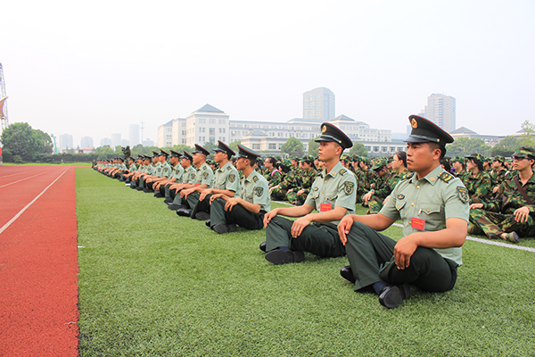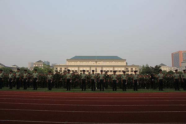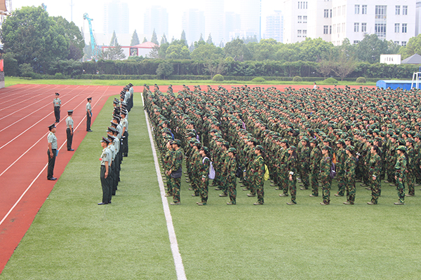 8月29日下午4时,我校2014级学生军训动员大会在田径场隆重举行。学校党委副书记陈刚同志,滨江区委常委、人武部政委李树人上校,中国人民解放军73021部队派驻军训团长李晓剑少校,校学生工作部部长、军训团政委方年根,校教务处处长张翼宙,校人武部部长、军训团副团长李海滨,校学生工作部副部长、军训团副政委石磊峰,校后勤管理处副处长、军训团副团长朱发丁,以及各学院领导和各军训营教导员参加了本次大会。大会由军训团副团长兼办公室主任骆红斌主持。本次军训共分5营36连,2393名学生参加训练,由中国人民解放军73021部队52名官兵和60名参训干部承担帮训任务。