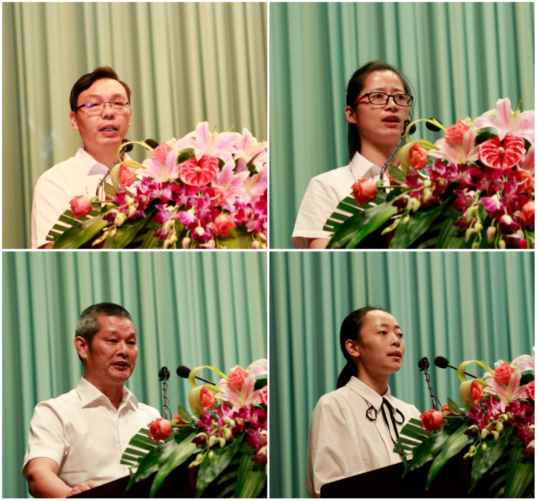 会上,报告团成员陈莹丽父亲陈玉臣、陈莹丽大学班主任龚上华、陈莹丽同事谢晓晓、最早采访报道陈莹丽事迹的记者蔡甜甜,从各自的视角出发追忆了陈莹丽的点滴故事,向听众们刻画了一位用责任扛起生命尊严,用青春融入伟大梦想的青年形象。随着报告团成员的深情讲述,陈莹丽老师的人物形象逐渐丰满起来,她丰富而深邃的精神世界撞击着在场所有老师的心灵。随后,学生代表上台为宣讲团成员献花致敬。