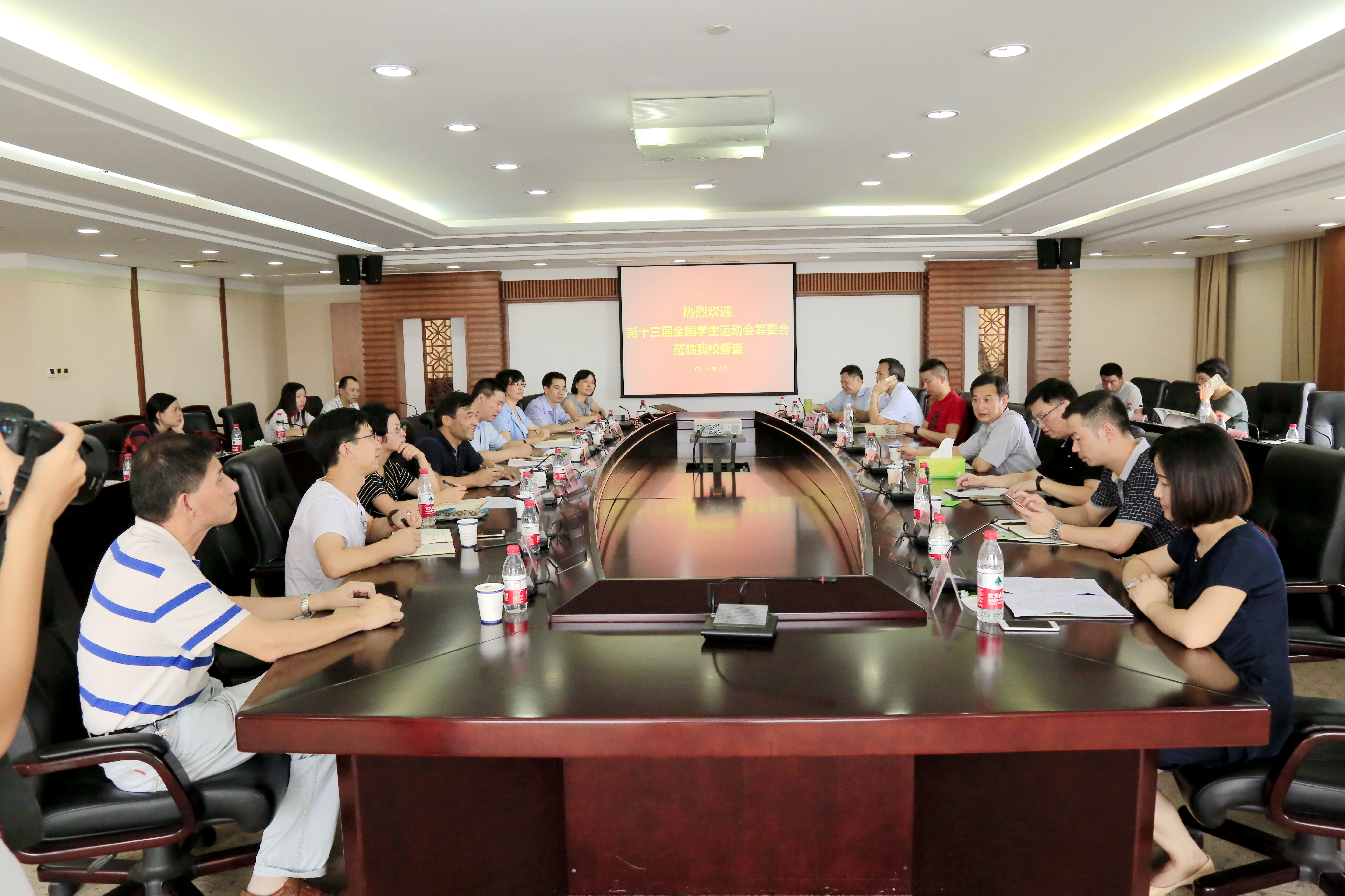 鲍学军了解了我校的赛事筹备情况,肯定武术项目场馆、功能用房的建设和学校后勤及安保设施的改建,并提出三点要求:一是筹备工作要及时查漏补缺,抓紧时间,补齐短板,落实任务,责任到人;二是抓好运动员寝室建设,逐间检查,逐一排查,细化卫生;三是强化软件建设,提升赛事氛围,用饱满的精神、热情的态度、周到的服务迎接全国各省代表队的到来。鲍学军还慰问了我校各部门相关工作人员,肯定他们的辛勤付出,鼓励大家齐心协力,在最后的刺激阶段不放松不懈怠,继续努力,顺利完成并优化筹备工作。