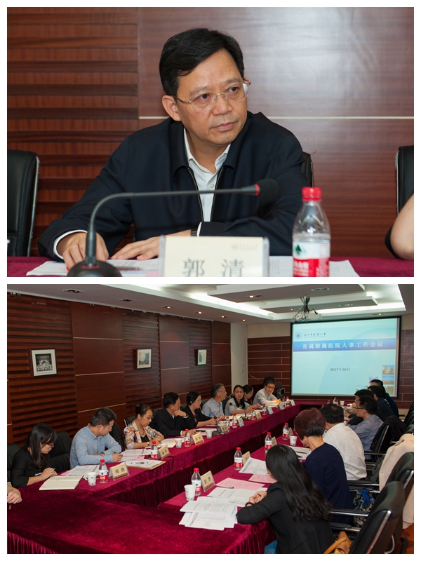 郭清副校长就直属附属医院2017年卫生专业技术职务自主评聘试点工作进行布署并提出要求。他要求各医院要高度重视此次评聘工作,把自主评聘与岗位设置、考核聘用、绩效管理等人事制度形成衔接配套,协同推进。