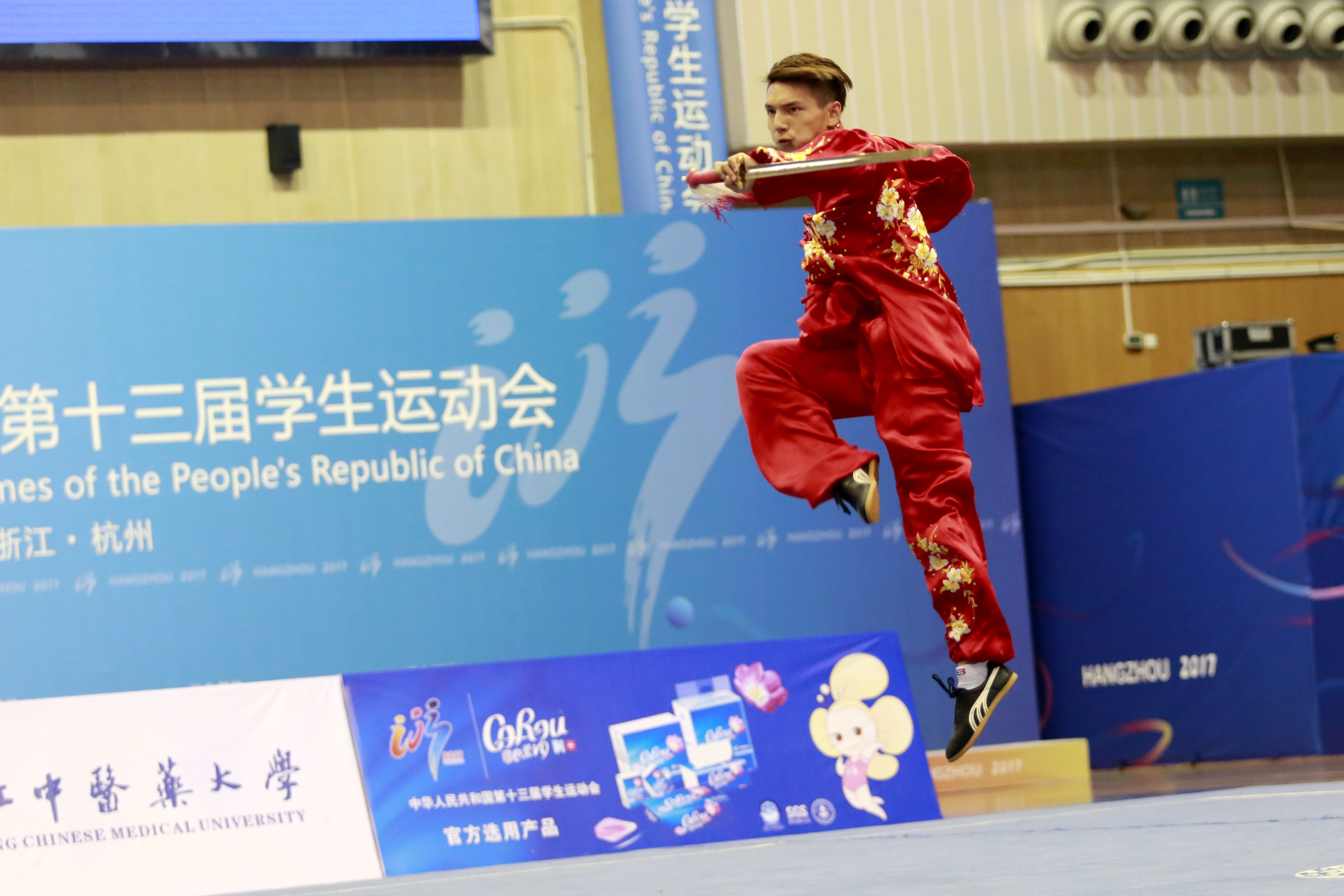 9月7日,我校人文与管理学院张仁材同学参加第十三届全国学生运动会大学组男子太极剑和大学组男子太极拳的比赛,均以总分9.66分的优异成绩摘取桂冠。