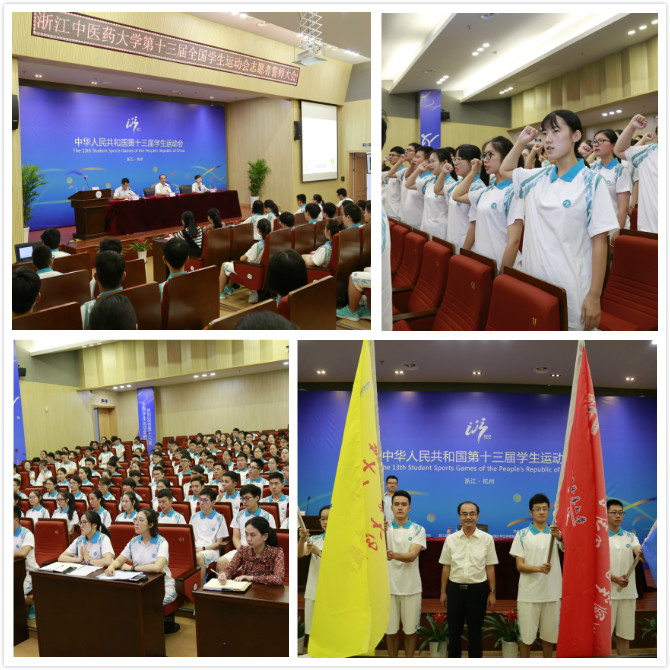 8月31日上午,我校第十三届全国学生运动会(以下简称“运动会”)志愿者出征誓师大会在滨文校区图书馆报告厅举行。校党委副书记陈刚出席会议,校团委负责人和我校199名运动会志愿者以及教师领队参加会议。