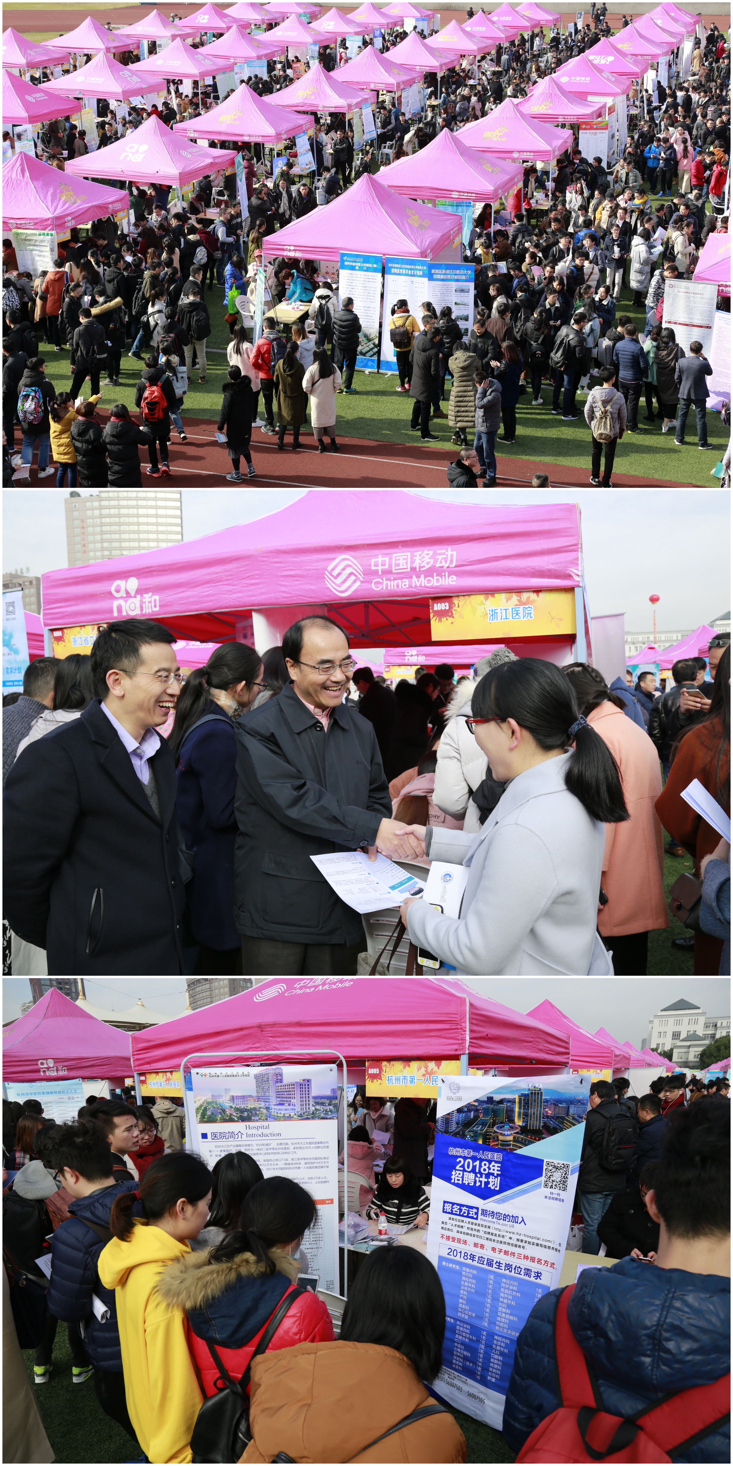 12月9日,我校2018届毕业生冬季大型综合招聘会暨杭州市大学生冬季校园招聘会浙江中医药大学专场在滨文校区田径场举行。招聘会吸引了650余家用人单位参会,浙江省人才市场、杭州天和高科技产业园、杭州湾信息港等纷纷组团参展,提供了临床、医疗、研发、营销、管理等相关专业的15000余个就业岗位。党委副书记陈刚亲临招聘会现场指导,并与毕业生交流,为他们加油鼓劲。