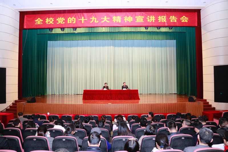 12月6日下午,全校党的十九大精神宣讲报告会在行政楼报告厅召开。党委书记孙秋华在会上作专题报告,会议由纪委书记章建生主持。