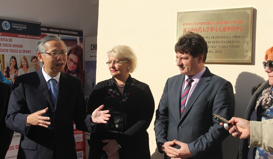 “Vasile Goldiş”西方大学董事长Aurel Ardelean在揭牌仪式上指出,与浙江中医药大学合作的中医中心,是罗马尼亚第一家中医中心。中心成立以后,学生不仅可以在阿拉德当地接受到来自中国教师的中医教育,还可以有机会到中国杭州进一步深造。最重要的是,学生有机会能够学习和实践一种新的医疗科学。我们非常荣幸能够和浙江中医药大学开展合作罗马尼亚第一个中医中心,这是罗马尼亚新创业模式的里程碑。