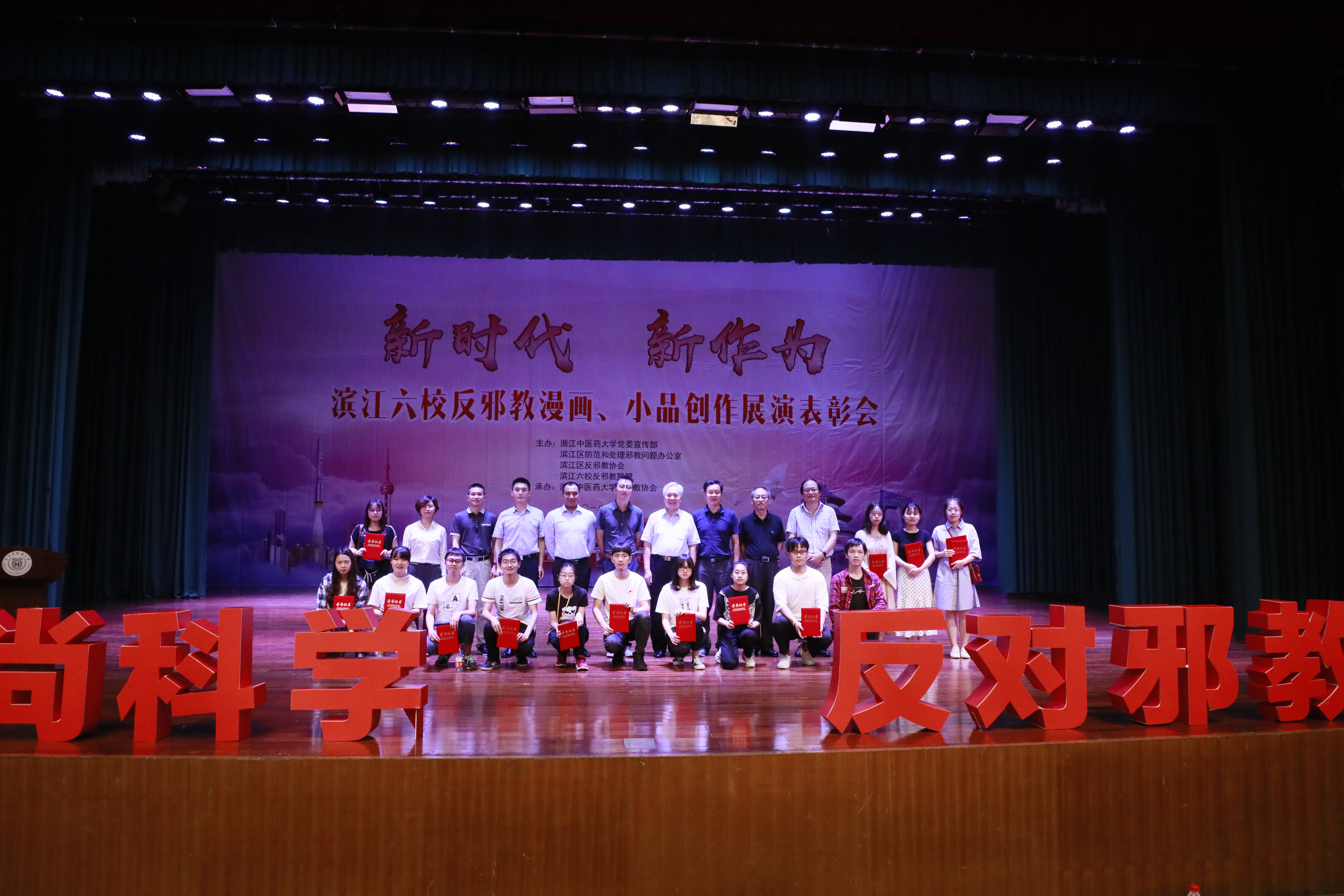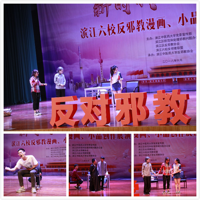 “崇尚科学,反对邪教,构建无邪平安校园”。6月6日下午,“新时代 新作为”滨江六校反邪教漫画暨小品创作表彰大会在我校行政楼报告厅举行。展演会由学校党委宣传部、滨江区防范和处理邪教问题办公室、滨江区反邪教协会、滨江六校反邪教联盟共同主办,浙江中医药大学反邪教协会承办。