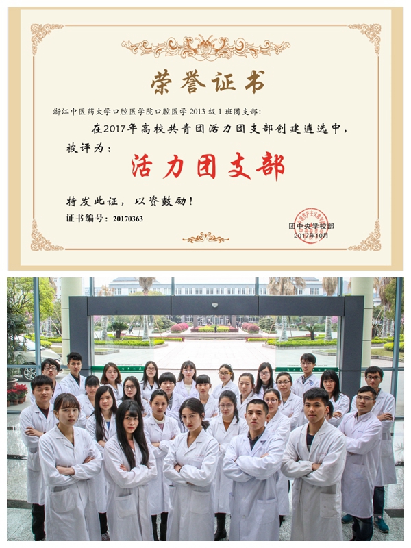 近日,团中央公布了2017年全国高校“活力团支部”名单,我校口腔医学院口腔医学2013级1班团支部获评全国高校“活力团支部”称号。另有2个团支部入选浙江省2017年高校共青团“活力团支部”。