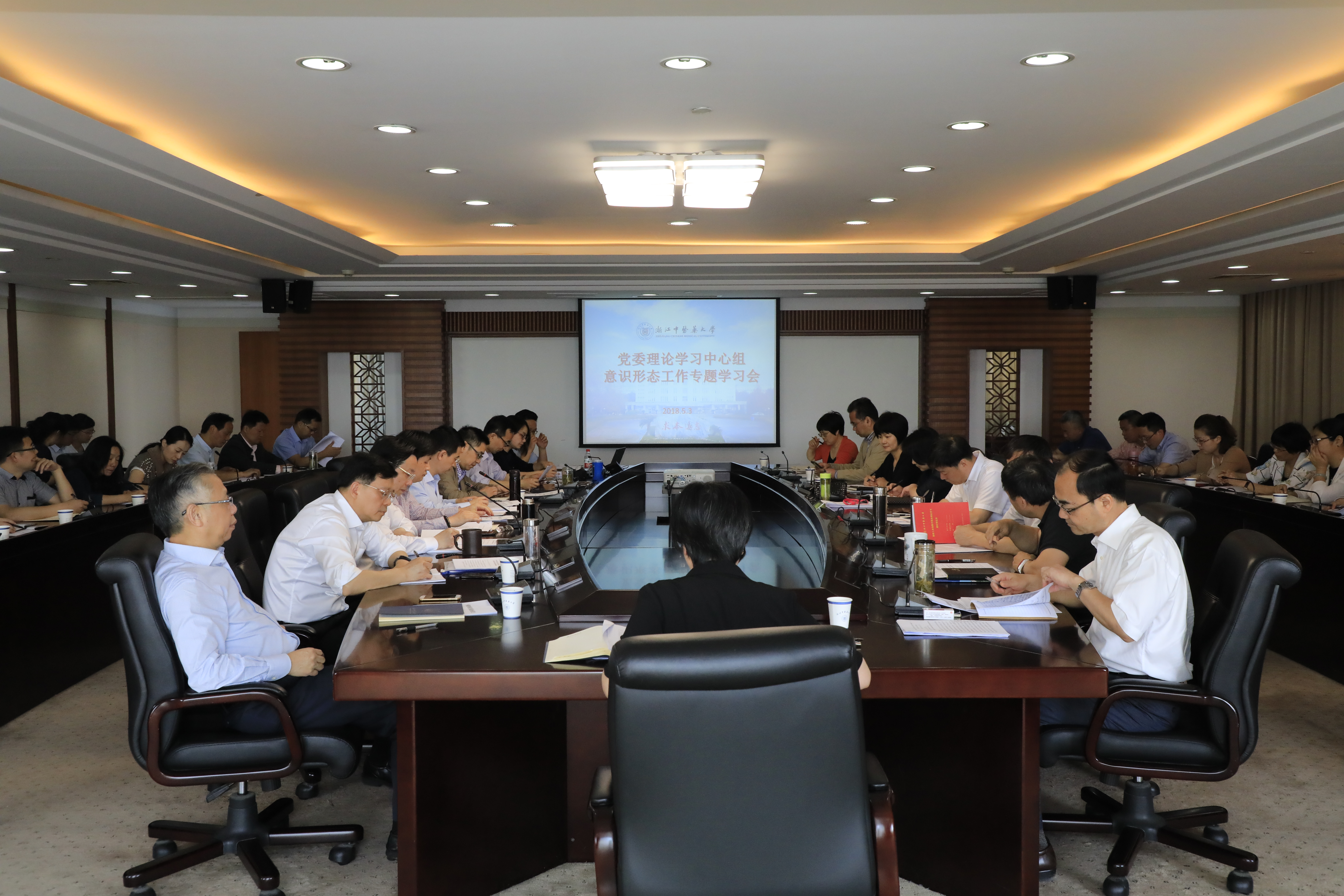 最后,校党委孙秋华书记作了总结讲话,提出了三点要求。一是始终绷紧意识形态这根弦。全校各级党组织、各部门、各单位要按照校党委的统一部署和要求,持续推进全面从严治党和正风肃纪自查自纠工作,望闻问切,既治已病,更治未病。要充分认识做好意识形态工作的极端重要性,按照党的十九大提出的“牢牢掌握意识形态领导权”要求,守土有责、守土尽责、守土负责,全面落实意识形态工作责任制,切实维护校园政治安全和社会稳定大局;二是时刻抓住理论武装这根本。读原著、学原文、悟原理,是党的理论武装工作的优良传统。我们要以纪念马克思诞辰200周年、《共产党宣言》发表170周年为契机,把习近平新时代中国特色社会主义思想作为理论武装工作的重中之重,更好推动深入人心、落地生根。坚持不懈推进习近平新时代中国特色社会主义思想进教材、进课堂、进师生头脑,激发广大师生员工自觉用习近平新时代中国特色社会主义思想武装头脑、指导实践、推动工作;三是牢牢把握阵地管理这关键。我们要牢固树立阵地意识、毫不放松地加强各类阵地管理,拉起“高压线”, 把好“准入关”,决不给错误思想提供传播渠道。加强阵地管理,首先要着力抓好课堂讲坛这个重点,深入推进以“课程思政”为目标的课堂教学改革,实现思想政治教育与知识体系教育的有机统一;其次要紧紧抓住校园网络这个关键,树立正确导向,聚焦内容建设,增强主动性、掌握主动权、打好主动仗,营造文明健康、积极向上的网络育人环境;最后要务必抓实制度建设这个根本。建立健全阵地管理制度,强化各类宣传阵地的建设和管理,做到备好闸门再放水、配好刹车再上路,使之始终成为传播弘扬主旋律,激发正能量的坚强阵地。