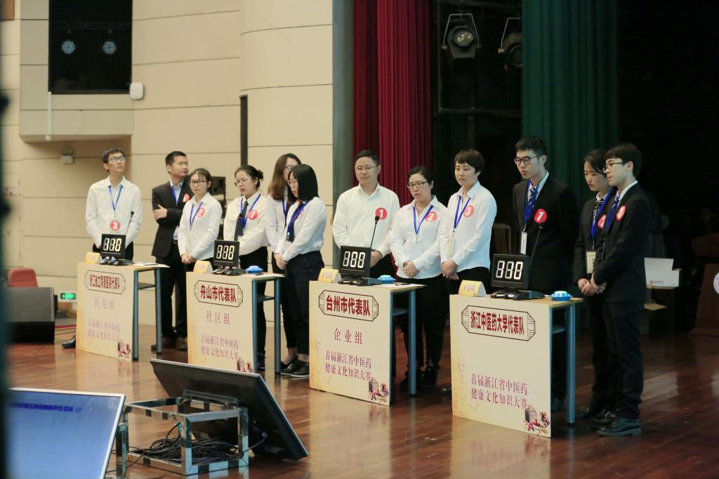 分组赛共分为笔试和现场答题两部分,各占50%,现场答题包括选手个人答题、团队答题和团队风险答题三个环节。现场答题由林咸明教授为裁判长,包素珍教授、梁泽华教授、郑敏霞主任中药师、汤军主任中医师、季旭明教授作为裁判委员。经过前期的刻苦备战,赛场上选手们信心饱满,答题沉稳有序,充分展现了自身深厚的中医药文化知识功底。最终,俞树翰获得个人一等奖、胡秀峰、孟闯闯、赵青获得个人二等奖,杨倩倩、柯娟、叶飞、田鸿芳、叶璐、黄加力获得个人三等奖;浙江中医药大学代表队获得大赛团队一等奖,金华市企业代表队和金华市社区代表队获得大赛团队二等奖,浙江省立同德医院代表队、绍兴市医院代表队、台州市企业代表队、宁波市医院代表队、舟山市社区代表队共5支代表队获得大赛团队三等奖;嘉兴市代表队、温州市代表队、绍兴市代表队获得大赛团队最佳组织奖。